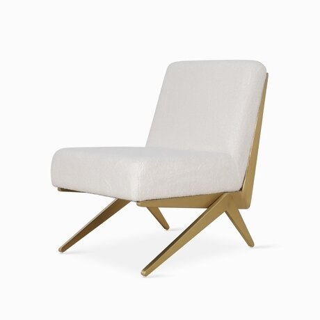 Золотые ножки придают ему элегантный и богатый вид, а белая обивка идеально впишется в любой дизайн.