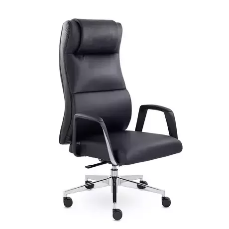 Широкое кресло с увеличенным мягким подголовником обеспечивает отличную поддержку спины и шеи. Изящные пластиковые подлокотники со вставками "под хром" и мягкими накладками гармонично сочетаются с хромированной крестовиной, придавая креслу элегантность. Механизм кресла позволяет регулировать высоту сиденья, отклонять спинку на 165 градусов и фиксировать наклон в любом положении. В наличии два изысканных цвета — кофейный и классический черный, которые подойдут под любой интерьер кабинета руководителя.