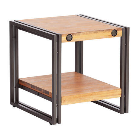 Простая четкая форма и лаконичный дизайн компактного приставного столика из коллекции CITY выгодно выделяют его в интерьере. Черные металлические ножки, крупные гайки с шайбами, врезанные в кромку столешницы, тонированная темной патиной отделка поверхности и открытая полка придают изделию особенную красоту, оригинальность и визуальную легкость. Стол изготовлен из массива акации, браширование и покрытие из натурального масла подчеркивают природную красоту древесины.