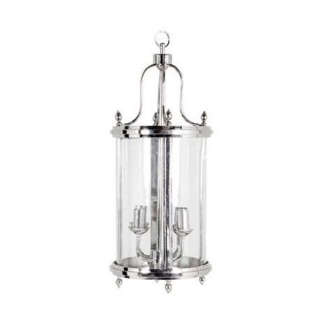 Светильник-фонарь подвесной металлический, цвет никель, с прозрачным стеклом. Диаметр 26 см x Высота 64 см. Патрон E14, мощность max 4 x 60W.