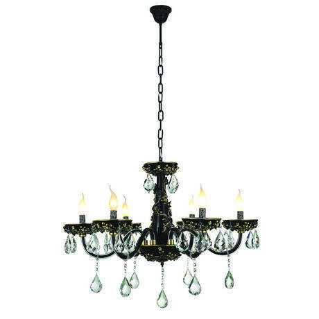 Бренд: Donolux; Коллекция: Cigno Nero; Количество ламп: 6; Мощность лампы, W: 60; Общая мощность, W: 360; Площадь освещения, м2: 20; Тип лампочки (основной): Накаливания; Тип цоколя: E14; Напряжение, V: 230; Степень защиты, IP: 20; Виды материалов: Хрустальные; Материал арматуры: Металл; Цвет: Черный; Цвет арматуры: Черный; Место установки: На потолок.