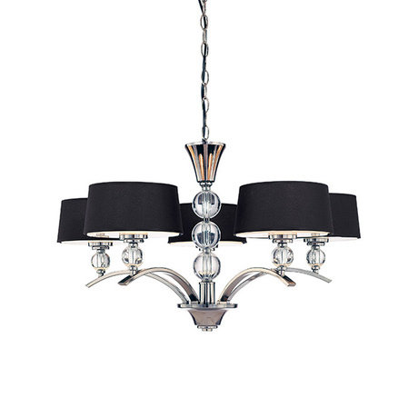 Люстра 5-ти рожковая Sophie на никелированной арматуре. Текстильные абажуры черного цвета скрывают лампы. Декор: шары из прозрачного хрусталя. Высота светильника регулируется за счет звеньев цепи. Дизайн: Sergio Orozco. Количество лампочек: 5.